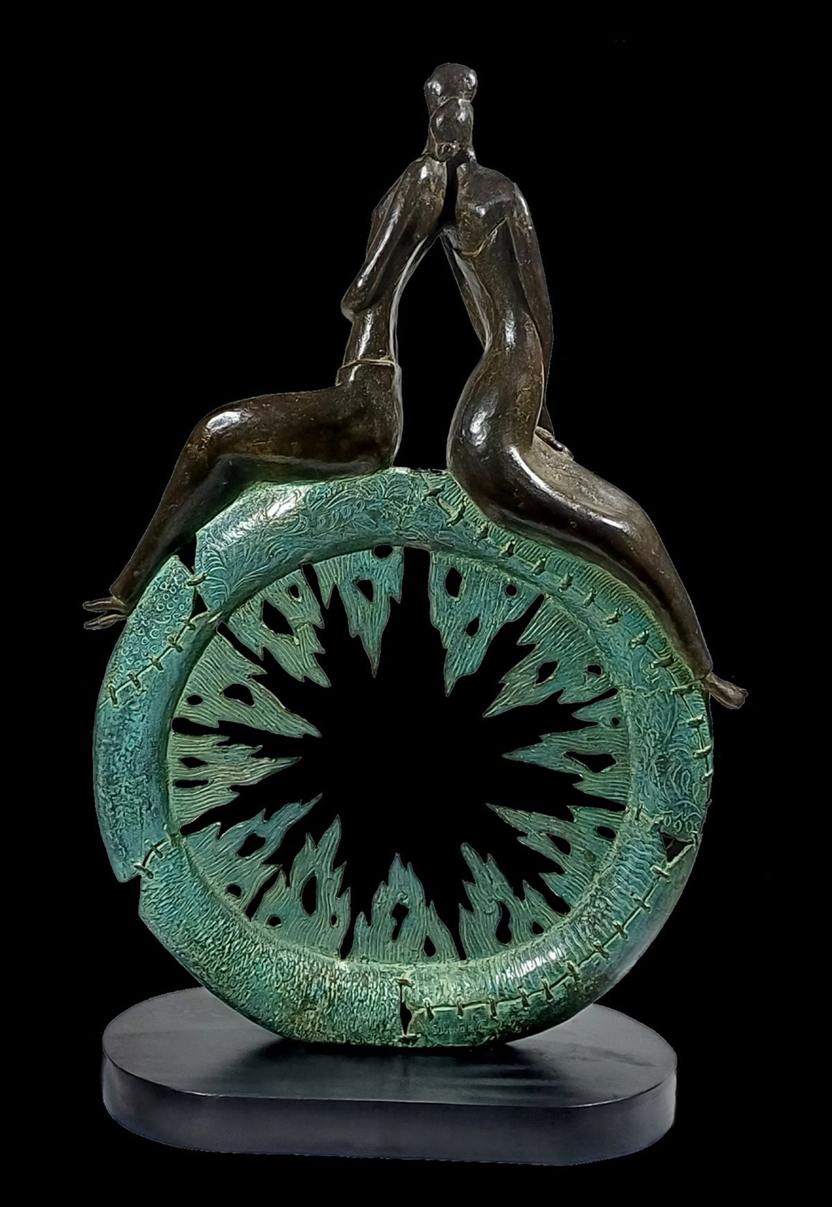 This work is a symbolic composition of human life. The couple is seated on a time machine, represented by a watch—symbolising that time waits for no one. It is depicted as an ever-turning wheel, reflecting the cyclical nature of life.